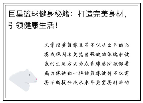 巨星篮球健身秘籍:打造完美身材,引领健康生活!
